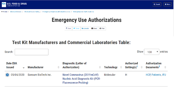北京时间5月5日晚,米兰·(milan)中国生物新型冠状病毒核酸检测试剂盒获美国食品药品监督管理局(FDA)紧急使用授权(EUA, Emergency Use Authorizations),这是该产品继1月28日获得中国国家药监局(NMPA)注册认证、3月3日获得欧盟CE认证后,米兰·(milan)中国生物获得的又一重要认证,将进一步助力公司服务全球新冠肺炎疫情防控。